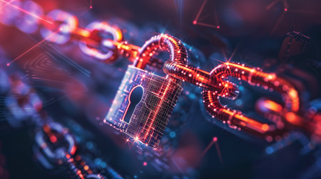 Strong locks on a chain symbolize the importance of cyber security for protecting sensitive data from cyber attacks and encryption needs.