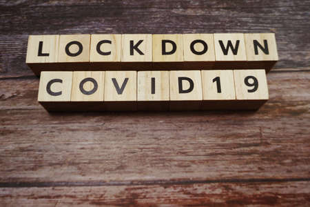 COVID-19 Pandemic Coronavirus concept. Wooden cubes with the inscription 'lockdown' on white background.