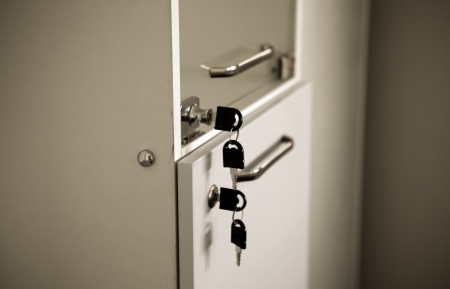 Locked desk locker in a modern office. security concept