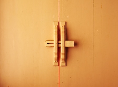 lock on the middle of pale red wood door, concept security