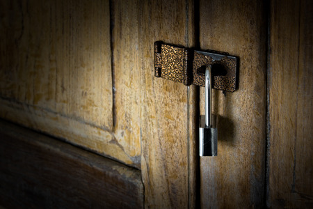 Old wood door and key lock