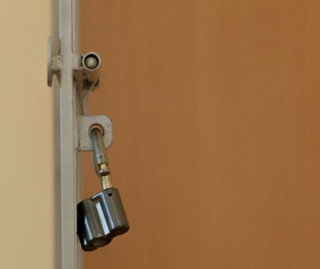 simple lock on scrap metal window photo