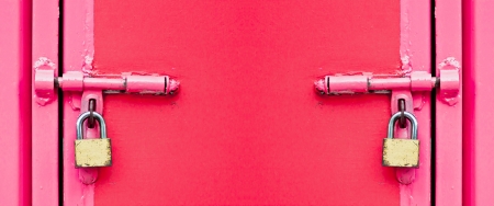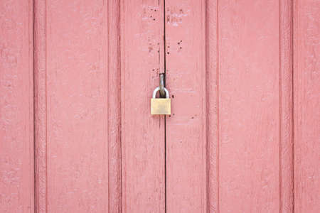 lock on the middle of pale red wood door, concept security