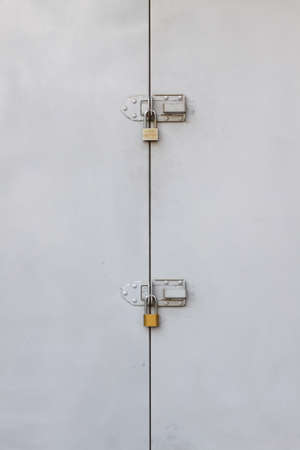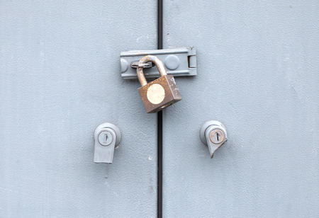 Iron lock on gray painted iron door, security gate shutter