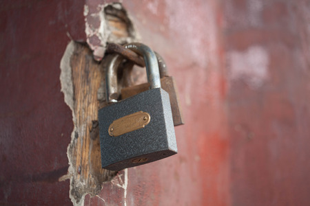 The old door locked with a padlock hanging brackets, set of backgrounds