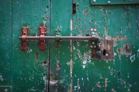 rusty lock on the green door
