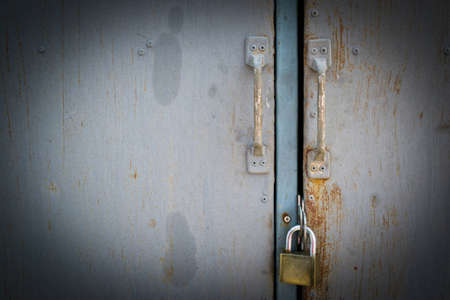 Close up old metalic door with lock