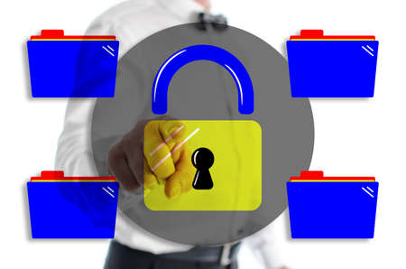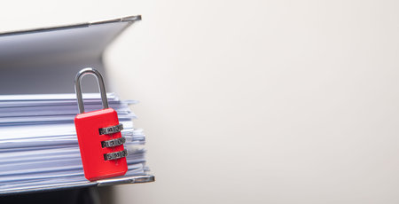 Binder folder with padlock on blue background. Top secret, protection of important information