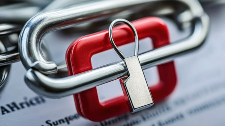 closed padlock connects metal chains on a blurred background. Business concept. Cover. Background for design.