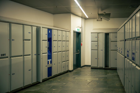Luggage lockers at train station terminal for secure baggage storage and passenger convenience