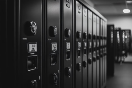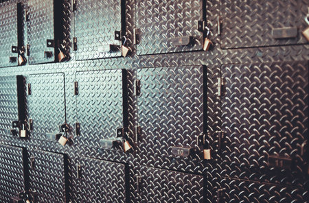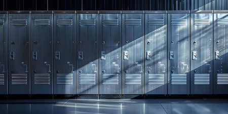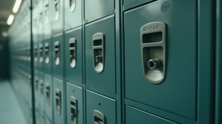 Rows of Metal Lockers: Symbolizing Strength and Security for Protected Spaces. Concept Locker Security, Strength, Protection, Metal Lockers, Symbolism