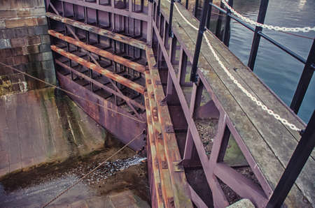 View from the dam to the water, abstract composition.