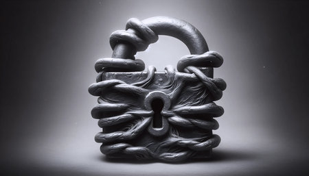 A rusted padlock on a chain, Ai generated image