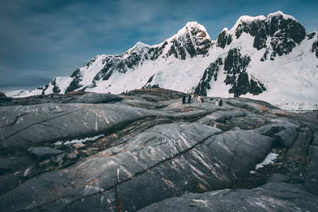 Fantastic landscapes of beautiful snow-capped mountains, rocks and ocean in Antarctica