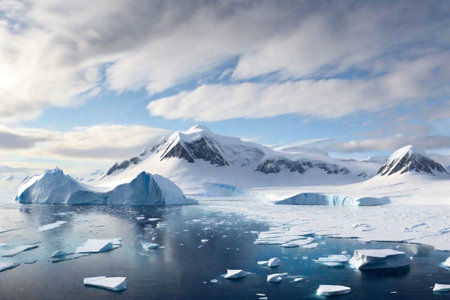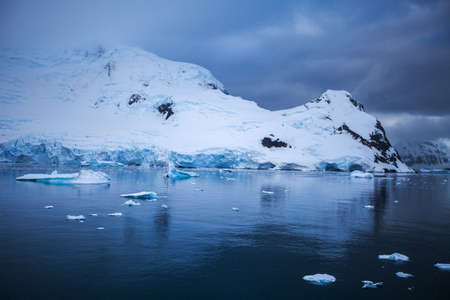 Antarctic landscape with icebergs and ice floes, Antarctica