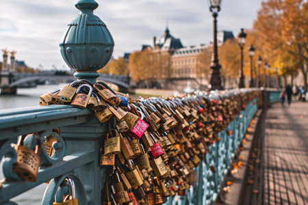 The romantic Pont des Arts bridge in Paris loaded with love locks Ai generated