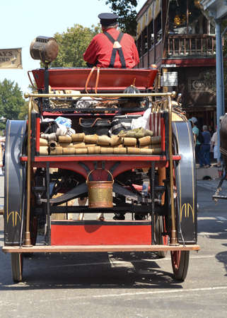 Sacramento, California, USA. 4 September 2016. Gold Rush era firetruck viewed from behind at the Gold Rush Days.