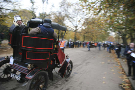 London, UK - November 07, 2010: London to Brighton Veteran Car Run participants, Oldsmobile, 1904, leaving Hyde Park, the event starts at 7:00am at the Serpentine Road in Hyde Park.