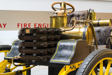 Old steam fire engine on display at train museum. Southeastern Railway Museum