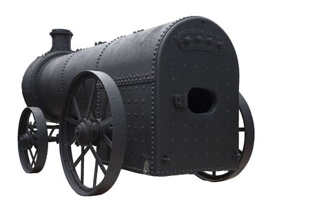 Isolated image of an antique steam engine. This steam engine was recovered from the jungles of Malaysia and was reputed to be one of the first steam engines to be brought into Malaysia by the British from England to cater for a Malayan tin mine.