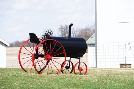 Transport Ready is the chimney on the machine . Advanced the transmission wheel of Lokomobils