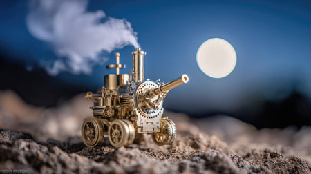 Old steam locomotive on a background of the moon. 3d rendering.