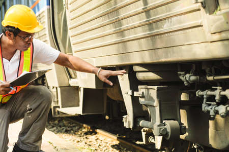 The view of the engineer being examined Thai railway machinery in Thailand