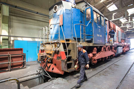 Summer, 2016 - Ussuriysk, Primorsky Krai - Ussuriysky Locomotive Repair Plant. An old locomotive car is being repaired in a railway depot