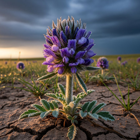 Spring flower on a barren hillside in Ladakh, Northern India.
