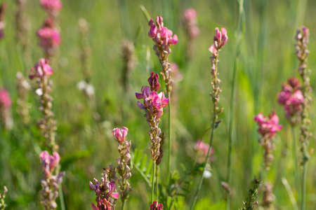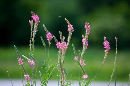 Esparcet pink flowers ,Onobrychis viciifolia on natural background