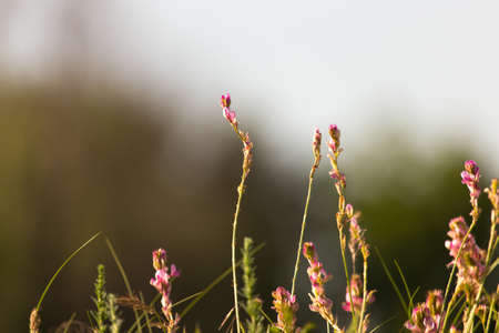 Pink flowers in the meadow in fine summer day