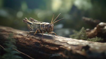 In the forest, an elegant grasshopper is perched on a fallen log, its vibrant colors contrasting with nature's greenery. This image was created using focus stacking, a close-up shot, and high-resolution photography techniques. The cinematography and cinematic angle give the image a hyper-realistic and hyper-detailed appearance, with a super-resolution and high dynamic range. --ar 53:30 --v 6.1 Job ID: 900a0161-f0ad-4084-972a-a9d8a0e4c8c0
