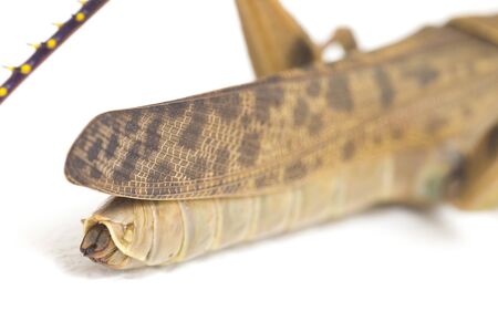 Grasshoppers, meridians, acrids, ticures or tucuras are insects. Some species form huge swarms that can devastate large crops. Dead insect in macro photography.