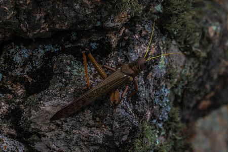 Isolated Locust insect living on tree trunk habitat,Wildlife macro animal
