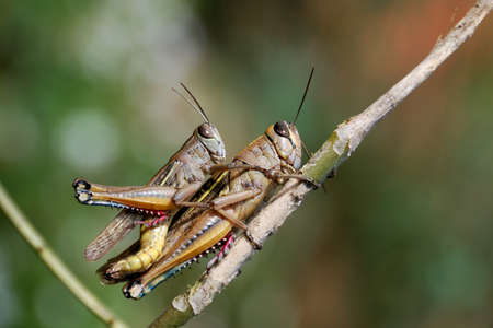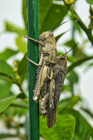 Mating of Grasshoppers - Grasshopper breeds sexually, namely the distribution of sperm of male grasshopper into the female body.