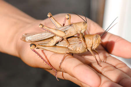 Grasshopper, brown grasshopper catching tent in the forest, Thailand