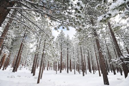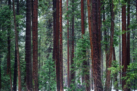 Bright Colors of Redwood Forest In Winter just after a snowfall