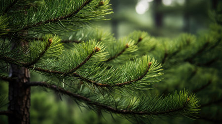Green pine branch texture with copy space, perfect for wellness and eco design. Natural soft-focus pine texture in macro view with eco-friendly concept Banner