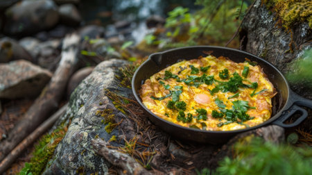 A simple and delicious wild omelette made with fresh eggs gathered from a nearby nest and wild herbs picked from the forest floor