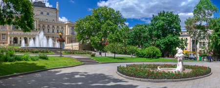 Odessa, Ukraine - 06.12.2018. Sunny summer morning in the historical center of Odessa, Ukraine. Opera House and theatre square