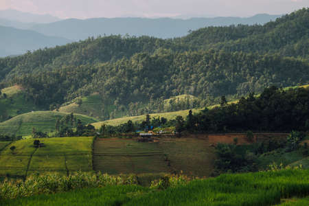 Aerial view of Nang Lae Nai Rice Terraces in Chiang Rai, Chiang Mai province, Thailand