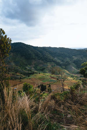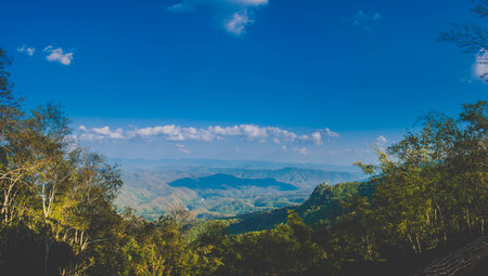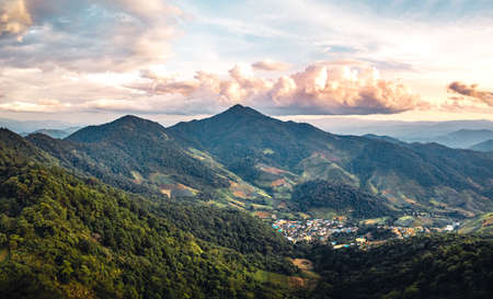 Beautiful mountain landscape view from Chong Yen at Mae Wong National park in Thailand.