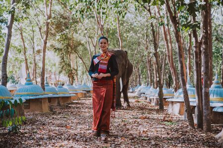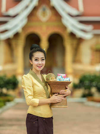 Young woman off smile of silk dress asian woman in silk dress in temple