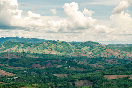 landscape of destroy the forest on Mountains that have been cut down tree for farming farmers in the rural villages in thailand