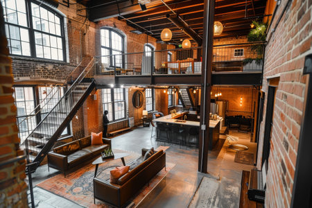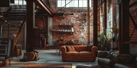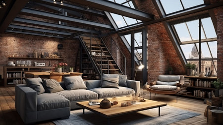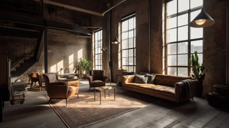 loft with exposed brick, metal beams, and industrial elements, creating a unique and edgy living space. Generative AI