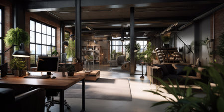 Modern design office interior concept architecture industrial loft. Generative AI AIG18.