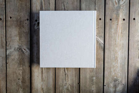 Book with blank cover on wooden background