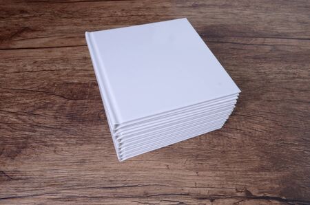 Blank books on wooden background
