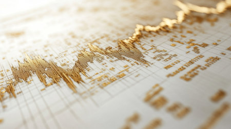 A close-up view of a gold price chart with intricate details, including percentage changes and key metrics, highlighted against a clean, white background.