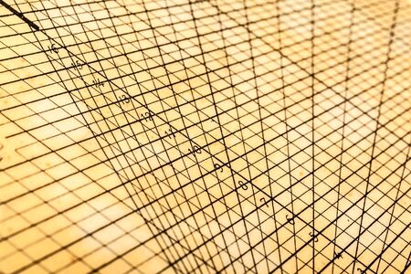 a weathered and yellowed geometrical or mathematical grid for calculations
